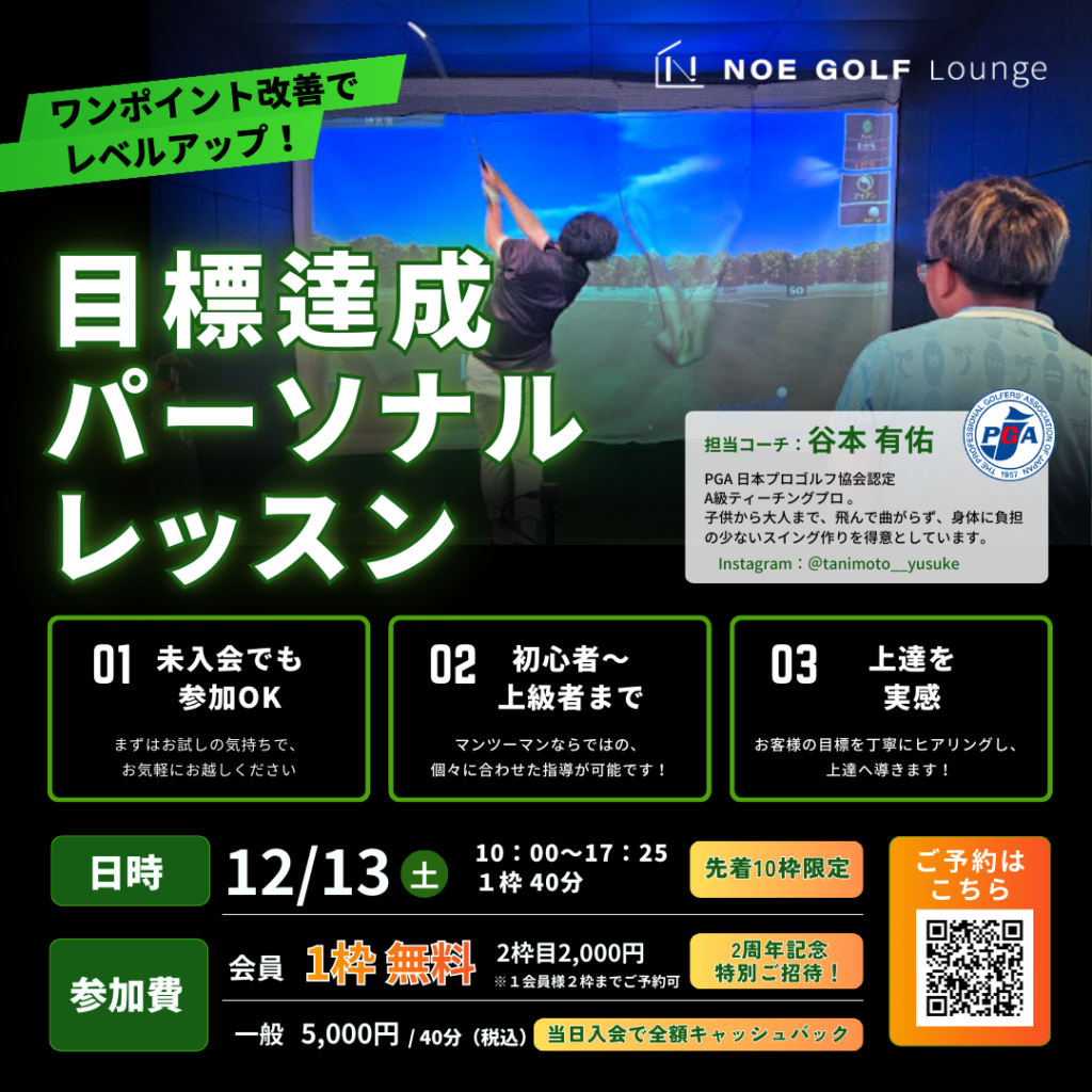 ※シューズのレンタルはございません。ご持参いただくか、動きやすいシューズをご着用の上でお越しください。(ソフトスパイクまたはスパイクレスシューズをご着用ください。)