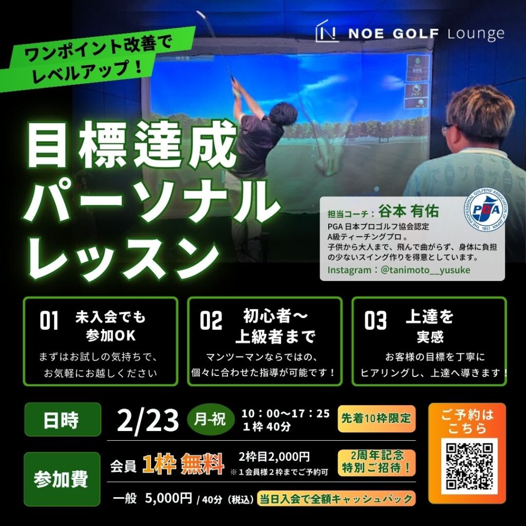 2/23(月・祝)、PGA認定プロコーチによる「目標達成パーソナルレッスン」を開催いたします。